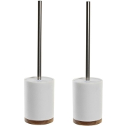 2x stuks WC/Toiletborstel in houder wit keramiek/acacia hout 41x10 cm -
