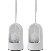 WC-borstel/toiletborstel in houder - 2x - wit - kunststof - 14 x 40 cm -