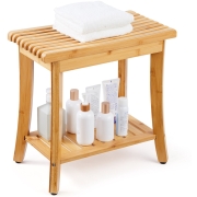 VEVOR Bamboe Douchebank, 48 x 28 x 46 cm, Waterdichte Douchekruk met Opberggreep, Draagvermogen 150 kg, Spa Badzitje Organizer, Voor Volwassenen, Senioren, Vrouwen, Ouderen, Binnen en Buiten
