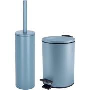 Badkamer/toilet accessoires set - WC-borstel en pedaalemmer 3L - metaal - lichtblauw -
