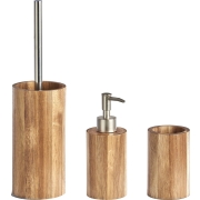 Zeller badkamer accessoires set 3-delig gemaakt van hoog kwalitatief acacia hout. Verander je badkamer in een luxe oase van rust met deze handige accessoires. Set bestaand uit een WC/toiletborstel…