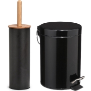 Zeller badkamer/toilet accessoires set gemaakt van metaal/bamboe hout in de kleur zwart met Scandinavisch strak vormgegeven design. Deze stijlvolle set bestaat uit een pedaalemmer en WC-borstel.…