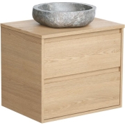 Badkamermeubel met opzetwastafel van steen - Eikenfineer - 60 cm - MILIPAM L 60 cm x H 50 cm x D 45 cm