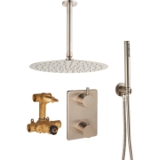 Saqu Shine complete inbouw regendoucheset Ø30cm met plafond aansluiting Geborsteld Staal