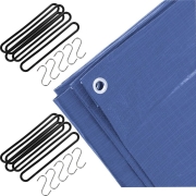 Afdekzeil / dekzeil blauw 3 x 4 meter met 15x spanrubbers en S-haken -