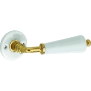 Deurkruk op rozet Evelyne porselein wit/messing ongelakt bij Onlinedeurbeslag.com | Afname Per: 1 Set | Deurdikte (mm): Geschikt voor een deurdikte van 38 - 50 mm | Collectie: Merigous | Finish:…