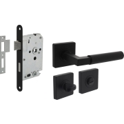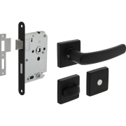 Intersteel Deurbeslag Set Toiletslot 63/8mm Zwart Met Deurkruk Baustil en WC-Sluiting Zwart
