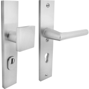 Deze rechthoekige set voordeurbeslag bestaat uit aluminium en is hierdoor licht van gewicht en sterk tegelijk. Het veiligheidsbeslag is F1 gematteerd, waardoor het een zilverkleurige uitstraling…