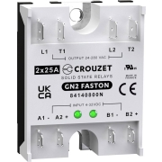 Crouzet Halfgeleiderrelais 84140800N 25 A Schakelspanning (max.): 280 V/AC Speciale nuldoorgang 1 stuk(s)Technische spec.: Aansluiting (componenten): Kabelschoen 6.3 mm, Kabelschoen 4.8 mm · Afmeting…