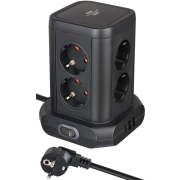 Compacte stekkerdoos met 2 USB A contactdozen (max. 18W) en 1x USB contactdoos C (max. 20W) Power Delivery voor snel opladen - de stekkerdoostoren biedt ook 8 geaarde contactdozen in een 45…
