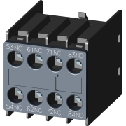Hulpschakelaar aan de voorzijde, 2 NO + 2 NC Stroomweg 1 NO, 1 NC, 1 NC, 1 NO voor magneetrelais Maat S00 schroefklem 53/54, 61/62, 71/72, 81/82 Fysiek gecodeerd. Alleen met magneetrelais 3RH2140…