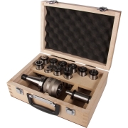 11 delige set in kist inclusief spansleutel. Inhoud: 1x Freeshouder MTA 4 PWC 20-55 5x Spantangen ø6, 8, 10, 12, 16mm 2x Reduceertangen, MK 1 en MK 2 1x…