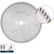 HM zaagblad voor NF-metalen, ø300x3,2x30mm Z=96 TF pos - 5550035 BeschrijvingUitvoering:HM tanden met positieve snijhoek en afwisselend trapezium- en vlakprofiel.Toepassing:Inzetbaar op stationaire…