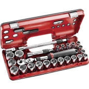 Facom SXL.DBOX3PB Dopsleutelset Metrisch 1/2 (12.5 mm) 25-delig Stofdichte telescopische omschakelratel met bedieningshendel voor links-/rechtsom draaien. Eenvoudig instelbaar…