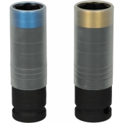 Presentatie: Set van 3 KS TOOLS slagmoerdoppen voor aluminium velgen - 04-19-21mm - 1/2" - 515.1005, speciale doppen voor montage en demontage van wielen. Heeft een ABS coating om beschadiging van de…