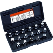 Bahco olie afvoer plug set | BE6217Bijzondere kenmerken· Olie Afvoer Pluggenset, 17-delig· Set met 17 3/8 aandrijfvierkant doppen met verschillende bits, geleverd in kunststof koffer· Materiaal:…