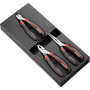 Bevat: - 1 tang met halfronde bekken: 185A.20CPE. - 1 combinatietang: 187A.18CPE. - 1 zijkniptang:192A.16CPE. Compatibel met het modulaire FACOM opbergsysteem: geschikt voor de…