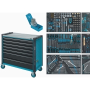 Degelijk uitgevoerde 262-delige gereedschapswagen met 7 laden en deur en verder de volgende kenmerken: Duurzame eva slijtvaste CARBON look inlays. 7 gelagerde laden …