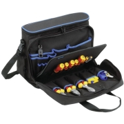 Klauke KL905B15 KL905B15 Gereedschap-hangtas (met inhoud) 15-delig Kenmerken: · Notebook-gereedschapstas voor technici · Materiaal: Zeer stevig nylon · 90° opklapbaar voorvak ·…