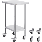 VEVOR RVS werktafel/keukentafel (76 x 60 cm) voor voedselbereiding met wielen, voorbereidingstafel met verstelbare plank voor commerciële keukens, restaurants, hotels, garages en buitengebruik