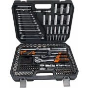 Bahco S910 Dopsleutelset 91-delig Dopsleutelset met ring- en steeksleutels. Krachtige staallegering. Mat. ISO 1174. DIN 3120. Koffer: zeer sterk polyethyleen (HDPE). Inhoud: 92…