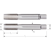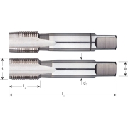 d1: 3/4 spoed: 14 l1: 96 mm l2: 28 mm d2: 20 mm vierkant: 16 mm materiaal: HSS Oppervlakte: Blank Soort tap: Handtappen Uitvoering: HSS handtappensets, National Pipe taper (NPT), sets à 2 stuks.Rotec…