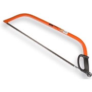 Ovaal oranje gelakt frame met zwart kunststof handgreep. Zaagblad horizontaal en vertikaal in te spannen via vleugelmoer aan de voorzijde van de beugel. Compleet met sandflex bi-metaal zaagblad…