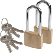 Set van 2 hangsloten inclusief 3 sleutels van 40 en 50 mm gemaakt van messing, ook te gebruiken als kofferslot. Handig hangslot met extra lange beugel van 65 en 80 mm voor bijvoorbeeld een koffer…