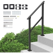 VEVOR Buitentrapleuningen, 2-3 treden trapleuningset, overgangsleuning van koolstofstaal met montageset, trapleuning voor senioren, betonnen treden, veranda en terras, zwarte vierkante buis