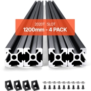 VEVOR 4-delige set van 1200 mm aluminium profielen met T-groeven, 2020. Aluminium extrusieprofiel, geanodiseerde lineaire rail volgens Europese normen, sleufprofiel voor 3D-printers, CNC-machines, doe-het-zelfprojecten, lasergraveren, zwart.