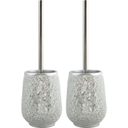 Toiletborstel in houder/wc-borstel - 2x Scarlett - kunststeen mozaiek - zilver - 36 x 11 cm -