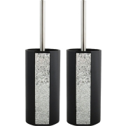 2x toiletborstel in houder/WC-borstel in de kleur zwart/zilver glitter, gemaakt van polyresin kunststeen en een rvs steel. De stijlvolle borstelhouder heeft een luxe mooie deco print. De totale…