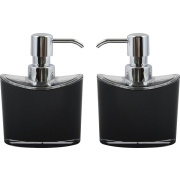 2x zeeppompje/zeepdispenser gemaakt van polystyreen kunststof in de kleur zwart met zilver kleur pompje. De dispenser heeft een stijlvol en compact ontwerp. Ideaal voor in de badkamer, keuken of…