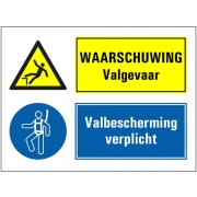 Valgevaar, valbescherming verplicht bord 600 x 450 mm - dibond met boorgaten