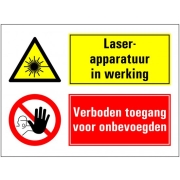 Laserapparatuur in werking, verboden toegang onbevoegden bord 800 x 600 mm - dibond met boorgaten