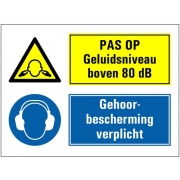 Geluidsniveau boven de 80 dB, oorkap verplicht bord 600 x 450 mm - dibond met boorgaten