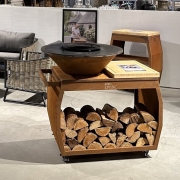 RJRoyal Living Plancha grill BBQ Camarada corten grillring met hoes en houtopslag vuurschaal buitenkeuken grillring cortenstaal Barbecue
