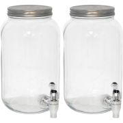 Drank dispensers - 2x - 3L - met metalen deksel en kraantje - glas -