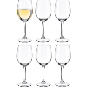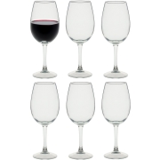 Een set met 6 stevige wijnglazen, geschikt voor rode wijn. De glazen hebben een inhoud van ca. 360ml, 36cl. Afmeting: ca. D8 x H20 cm. Materiaal: getemperd glas. Geschikt voor in de vaatwasser.…