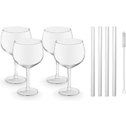 4x Gin Tonic glazen / cocktailglazen transparant 650 ml met glazen rietjes -