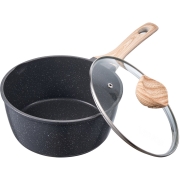 VEVOR Anti-aanbak steelpan Grote inhoud 2,37L met gehard glazen deksel, Soeppan Groentepan met afneembare handgreep, Melkpan Groentepan van aluminiumlegering, Zwart