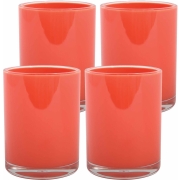 4x Limonade/drinkbeker met inhoud van 440 ml, luxe design PS kunststof. Kleur: koraalrood. Handig voor op de camping, picknick of op het strand. Materiaal: kunststof. Afmeting: 7 x 9 cm.…