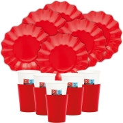 Givi Italia feest/verjaardag gebaksbordjes en bekertjes set New Wave, 32-delig in de kleur rood. Gemaakt van stevig karton dus een gemakkelijk alternatief voor plastic bordjes, in de kleur rood.…