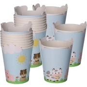 Feestbekers met hoesjes - 32x - boerderij dieren - kinderfeestje - papier - themafeestje - 250ml -
