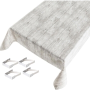 Tafelkleed/tafelzeil grijs houtprint 140 x 245 cm met 4 klemmen -