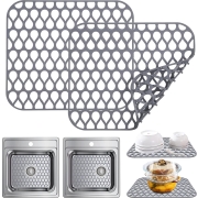 Siliconen spoelbakmat, 2 stuks, inklapbaar, hittebestendig, antislip, spoelbakbescherming, keukenspoelmat, voor roestvrijstalen spoelbak, wastafel, porseleinen kom (grijs, 33,58 x 31,6 cm)