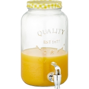 Drankdispenser/limonadetap 3,5 liter. Formaat: 16 x 16 x 26 cm. Materiaal: glas, metaal, kunststof. De dispenser is gemakkelijk te openen en sluiten middels de grote geel/wit geblokte draaidop aan…