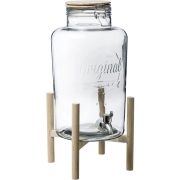 Glazen drank dispensers 8 liter met metalen kraantje, een luchtdichte houten deksel en een houten houder. Met deze dispenser serveert u op een leuke manier o.a. limonade/water/sappen, ook geschikt…