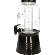 Drankdispenser/limonadetap 3,8 liter. Formaat: 20 x 15 x 26 cm. Materiaal: glas/metaal/kunststof. De dispenser is gemakkelijk te openen en sluiten middels de grote zwarte draaidop aan de…