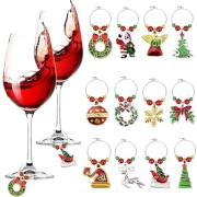 12 stuks wijnglas bedels Kerstmis aluminium glasmarkeerders Kerstmis dranken marker